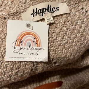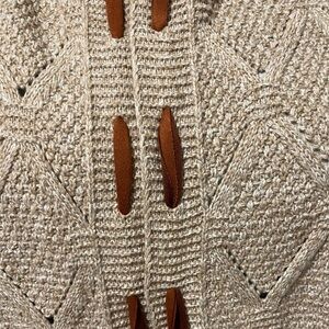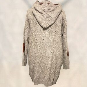 Brand new! Never got to wear and this chunky cardigan weighs over 3 lbs! Never gets that cold in Texas. Beautiful long cardigan with suede elbow patches and hoodie. Sorry no pockets. Length is 39”