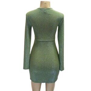 Mini-length lurex bodycon dress is great for holiday or date night occasions. Long sleeves with cutouts along the waist for standout appeal. Made with soft and stretchy fabric in a slim fit cut.