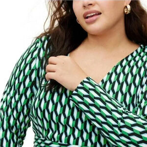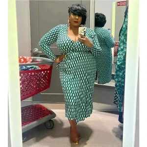NWT Women's Long Sleeve Midi Arrow Geo Green Wrap Dress - DVF for Target XXL
