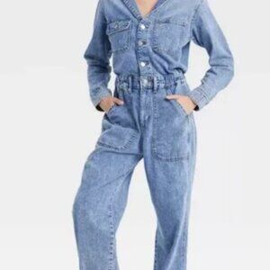 NWT - Women's Long Sleeve Utility Baggy Denim Jumpsuit - Universal ThreaT