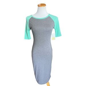 NWT Womens Lularoe Color Block Gray & Teal Julia Jersey Knit Bodycon Dress - XXS