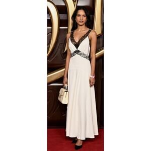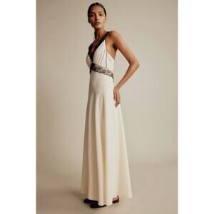 NWT Women's ME+EM Satin And Black Lace Full-Length Slip Dress size 12 Coquette