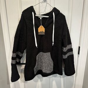 NWT Women's MainStrip Super soft Hoodie multicolored woven pouch, size M!