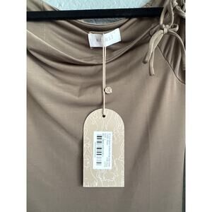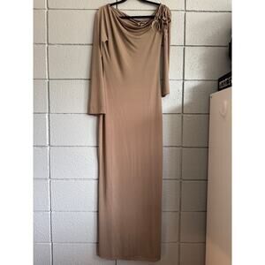 NWT Women's Meshki Gabby Tie Sleeve Slinky Maxi Dress in Coco size L Glam Party