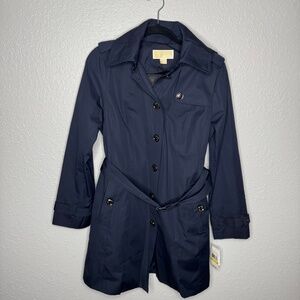 NWT Women's Michael Kors trench coat. Classic single breast Navy blue Medium
