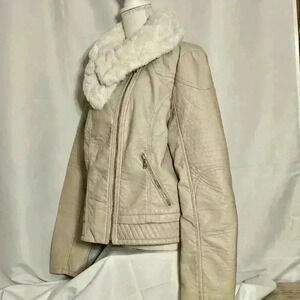 Guess Moto Womens Jacket Tan Faux Leather/Fur Gold Zippered Front/Dual Pockets. Size XXL. NWT - New With Tags. Fully lined.