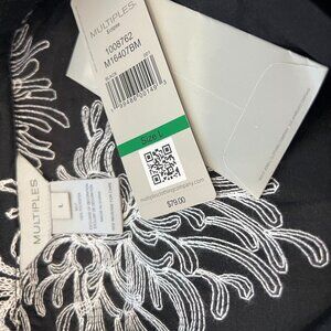 Name Brand: NWT Womens Multiples Black/White Embroidered 3/4 Sleeve Tunic Artsy Size L Retail $79
