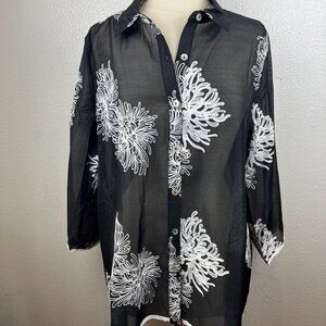 NWT Womens Multiples Black/White Embroidered 3/4 Sleeve Tunic Artsy Size L