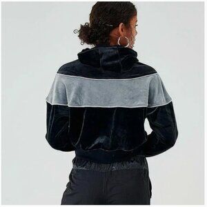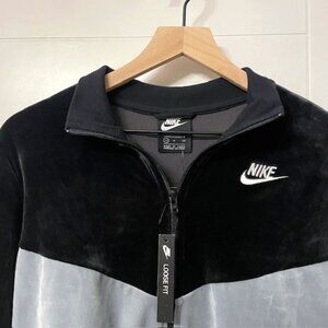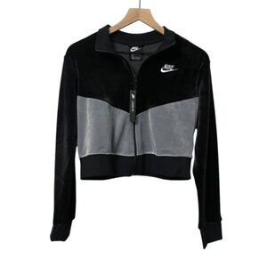 NWT Women's Nike Full Zip Cropped Velour Track Jacket Black Gray Size Small