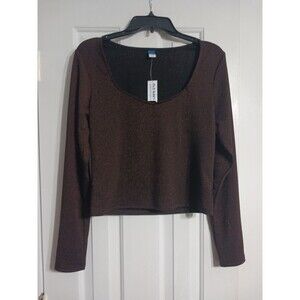 NWT Women's Old Navy Fitted Brown Shine Top Size 2X (20-22)Blouse Sparkle N5