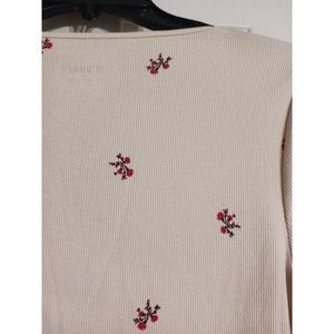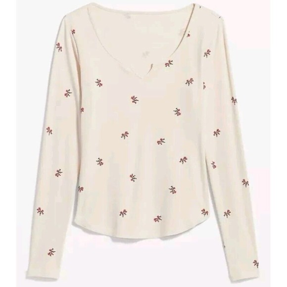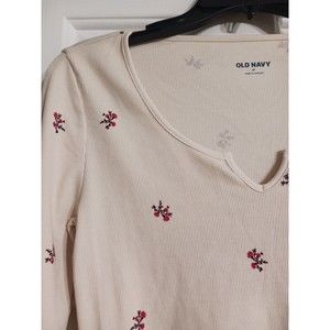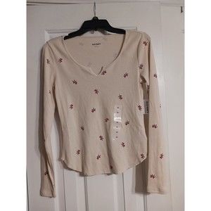 New with tags women's Old Navy fitted long sleeve rib knit tee size 2X (20-22). Color is ditsy floral. 95% cotton 5% spandex. Notched scoop neck, curved hem, fitted, and hits below waist. New condition.