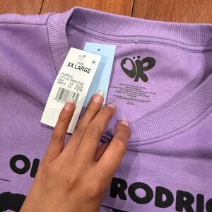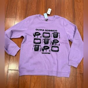 Keywords: Olivia Rodrigo, Vampire, Purple Sweatshirt, Graphic Print, Pullover, Crewneck, Medium, Womens, Casual, Concert Merch, Pop Star, Merchandise, Band Tee, Y2K, Trendy