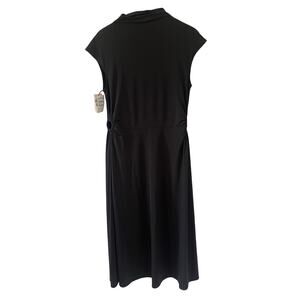 NWT Women's Open Edit Body-Con Black Midi Dress Side Cutouts Funnel Neck Sz L