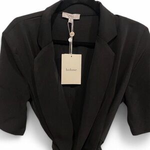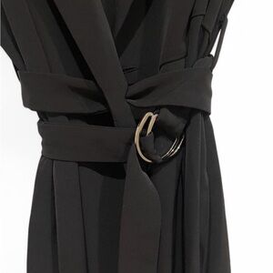 NWT Women's Ovi Bohme Black Belted Wrap Midi Dress Size Large Collared