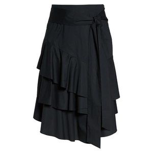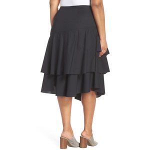 NWT Womens Plus Size 14W Vince Camuto Black Tiered Ruffle Belted Unlined Skirt