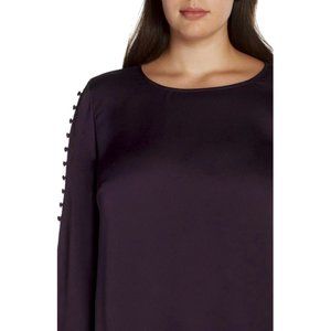NWT Womens Plus Size 1X Vince Camuto Dark Purple Button Bell Sleeve Satin Blouse