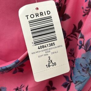 NWT Women’s Plus Size Torrid Mini Mesh Shirred Bodycon Dress Size: 2X 18/20 Pink