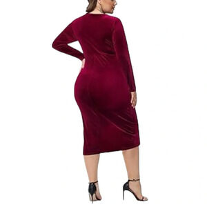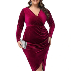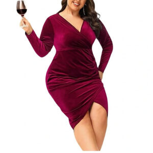NWT Womens Plus Size V Neck Lightweight Stretch Velvet Wrap Dress