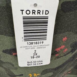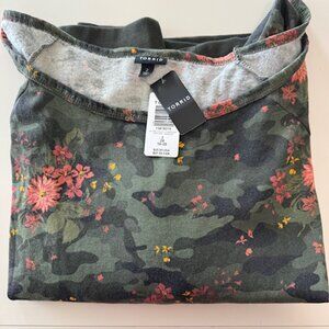 NWT Women's Plus Torrid Floral Camo Crew Sweatshirt, Off shoulder, Size 2