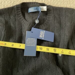 Women’s size large. 80% wool, 20% Cashmere, Black with Ivory logo. Authentic and purchased on Ralph Lauren website. Price is firm.