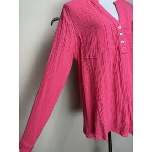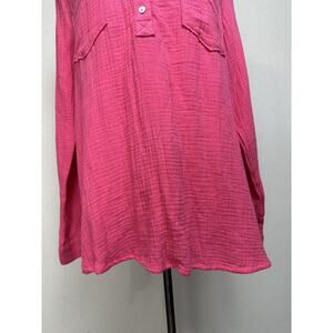 NWT Women’s Popover Gauze Top Tunic SZ XL Pink Long Sleeve Casual 1/4 Button Up