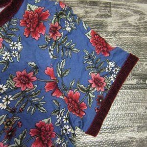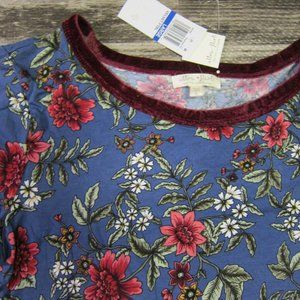 NWT Women's Print/Velvet Trimmed Short Sleeve Top