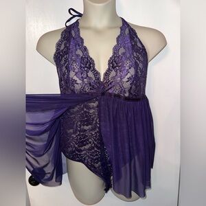 NWT Women’s Purple Lace Halter Babydoll bodysuit Lingerie Size 22 #1782