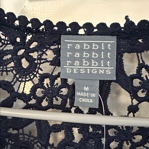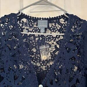 NWT Women’s Rabbit Rabbit Rabbit Midnight Blue Lace Crochet Cardigan Size Medium