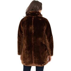 You can have two coats in one with this Nine West Faux Fur Reversible Topper - The soft Beaver Faux Fur side OR the smooth clean slinky side. The coat is totally reversible - both sides have pockets, collar and closures. There is a fun added detail on the lower hem sides - a gold hardware zipper than is functional for when you want to show off more of your outfit or just feel breezy. Nine West Outerwear - Originally founded as a fashion footwear brand, has made their mark in Outerwear & Swim with same strong mission statement - "empower women to take on the world in style".