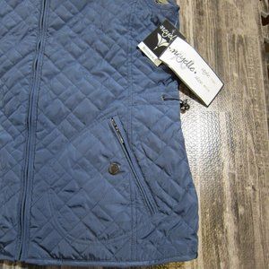 NWT Women's Neyelle Boutique Brand Reversible Quilt to Microboa tipped fur vest.