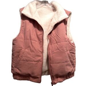 NWT Women's Reversible Sleeveless Vests Lamb Fleece Zipper Closure Size M Pink
