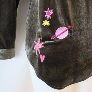 NWT Womens Romi Basha Cosmic Green Multicolor Boho Chic Velvet Shirt Top M