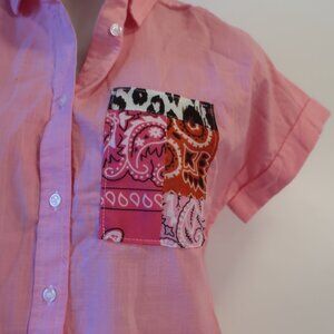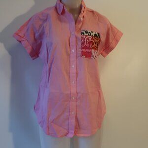 NWT Womens Romi Basha Pink Paisley & Animal Print Button Down Shirt S