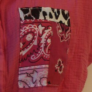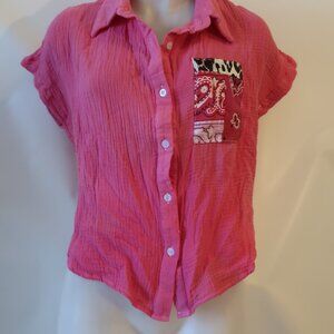 NWT Womens Romi Basha Rose Pink "Michelle" Leopard & Paisley Button Down Shirt S