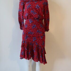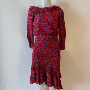 NWT Womens Saloni 100% Silk Red, Black, Blue Floral Long Sleeve Dress 2