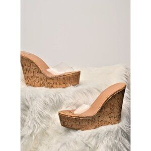 NWT Womens Sassy Beige Slip On Wedges Sandals Clear Workwear Vacay Office Chic