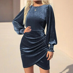 NWT Women’s Sexy Velvet Puff Long Sleeve BodyCon Dress