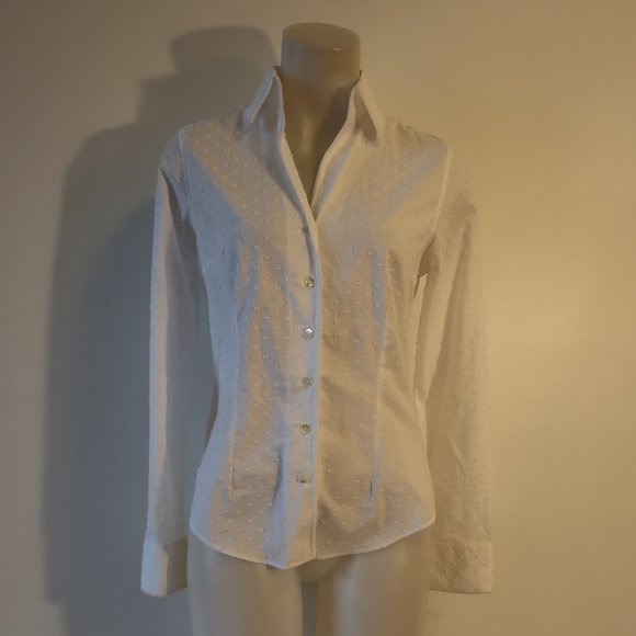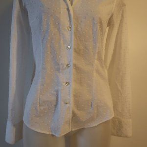 NWT Womens Shari's Place Spmar White French Knot Dot Button Shirt Top 42 US/M *