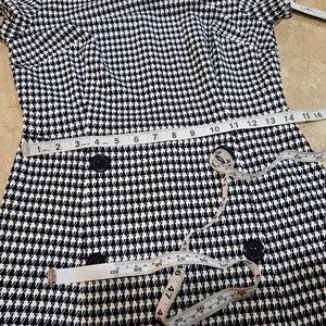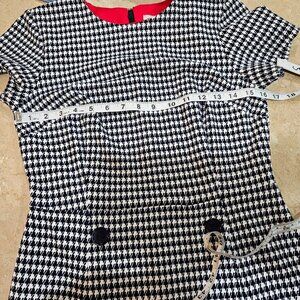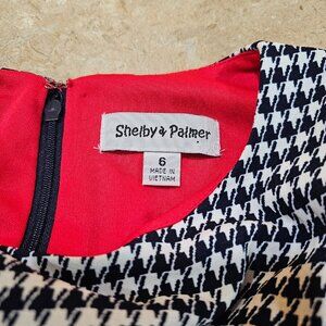 NWT Women's Shelby & Palmer Houndstooth Dress Navy and White Size 6. Red on the inside of the neckline. Shell: 95% Polyester and 5% Spandex. Lining: 100% Polyester. Laid flat measures approximately 16" armpit to armpit and 38.5" long from top of shoulder to bottom hem. Smoke free home.