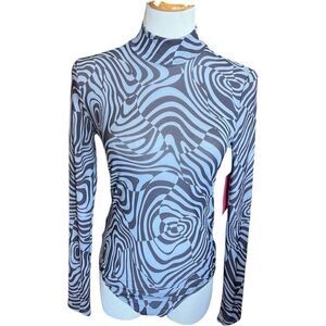 NWT Womens Shoedazzle Midnight Swirl Semi-Sheer Bodycurve Bodysuit - Sz M