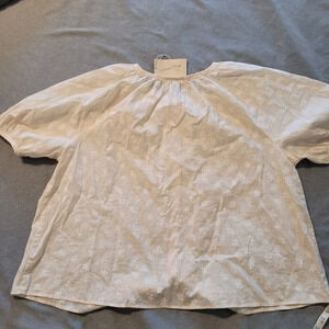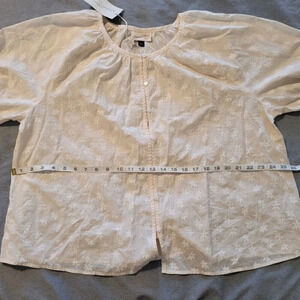 NWT Women's Short Sleeve Button-Front Blouse Relaxed Billowy Euro Summer