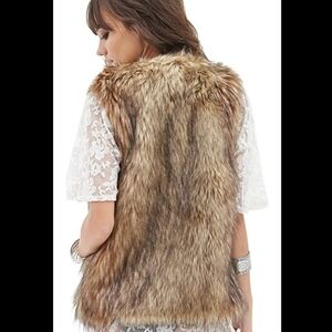 Women's Short Tan Faux Fur Fashion Vest.