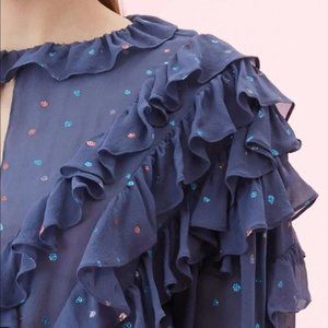 NWT Womens Size 10 Rebecca Taylor Pure Silk Glitter Gem Chiffon Ruffle Blouse