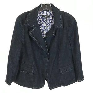 NWT Womens Size 14 Talbots Dark Denim Blue Contrast Stitch Blazer Jacket