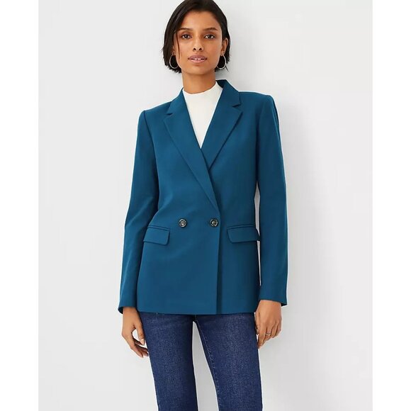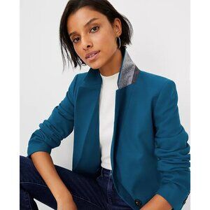 NWT Womens Size 16 Ann Taylor Teal Green Notched Lapel Flannel Blazer Jacket NEW
