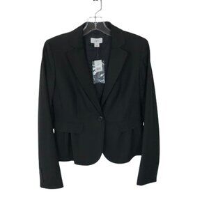 NWT Womens Size 4 Ann Taylor LOFT Black Cropped One-Button Structured Blazer