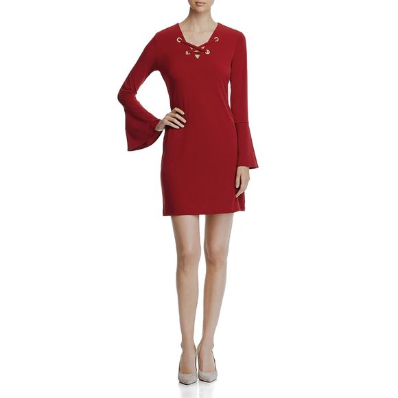 NWT Womens Size Medium MICHAEL Michael Kors Maroon Grommet Laced-Neck Mini Dress