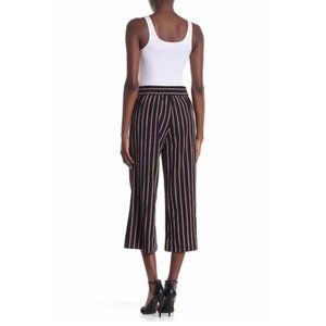 NWT Womens Size Medium Max Studio Black Striped Wide Leg Cropped Stretch Pants