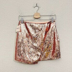 NWT Womens Size Medium Superdown Revolve ose Gold Pink Sequin Mini Skirt NEW