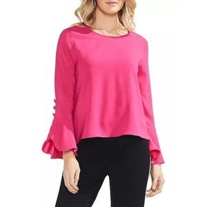 NWT Womens Size Medium Vince Camuto Pink Chiffon Flutter Satin Blouse